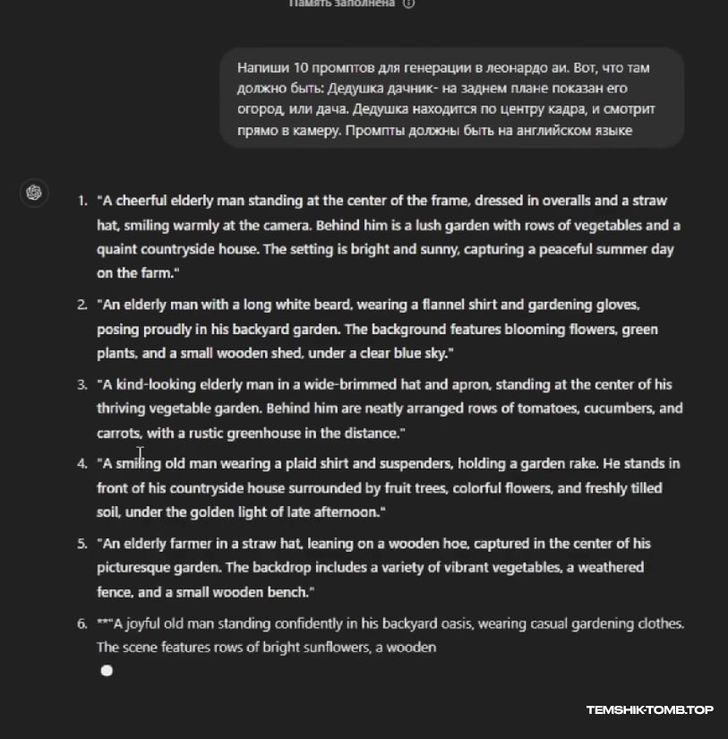Окей, начнём с того, что попросим чат GPT написать промты для генерации изображения нашего персонажа.
