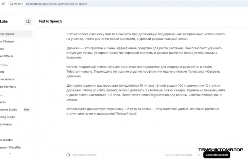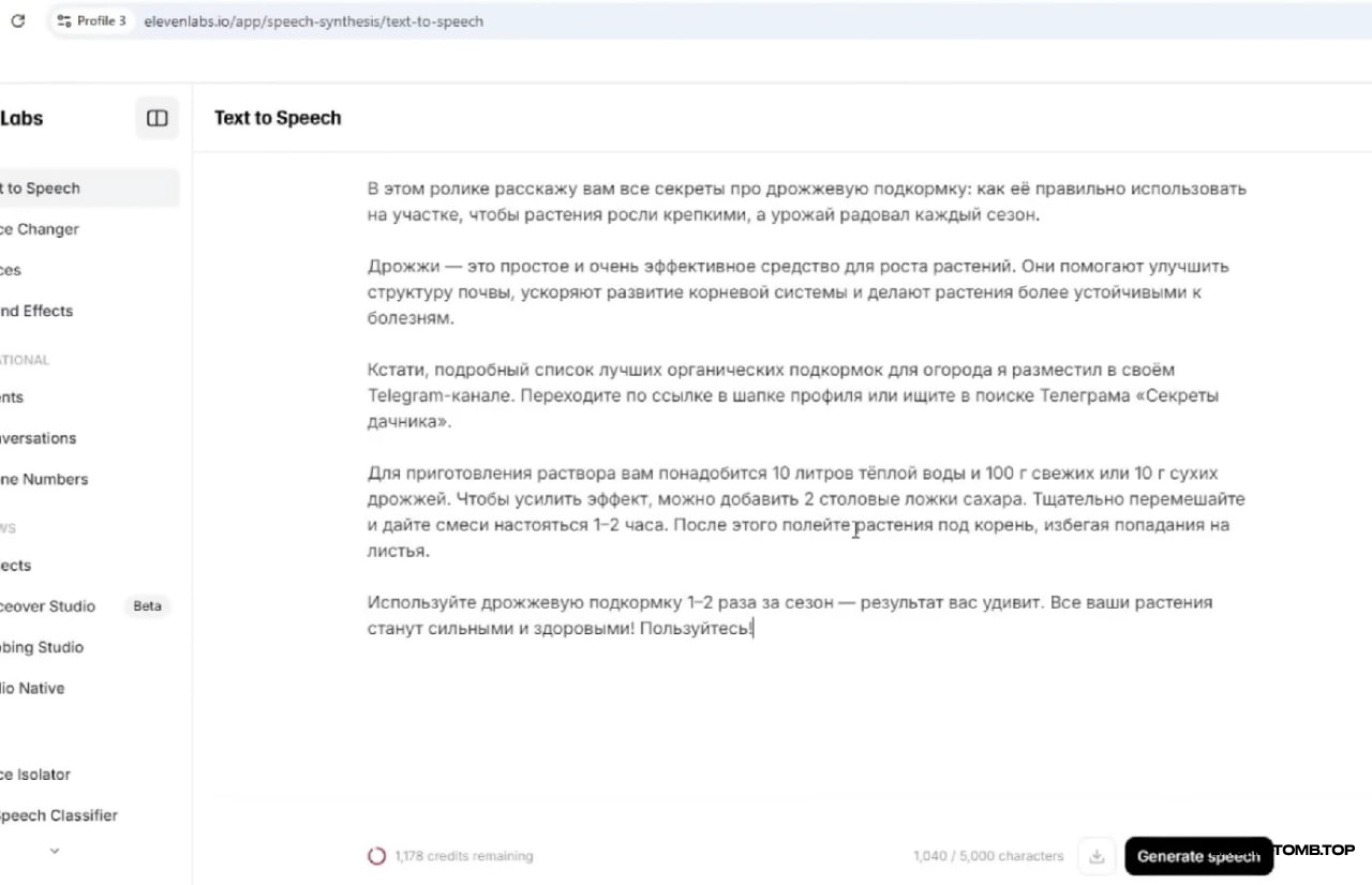 Это хорошо экономит наше время и силы, но помните, чтобы написать по-настоящему вирусный сценарий, одного чата GPT недостаточно, и вам всегда придётся где-то изменить вступление или тематику. Но даже так, этот текст очень хорош. Теперь, когда у нас есть текст, который нужно озвучить, перейдём в eleven Labs.