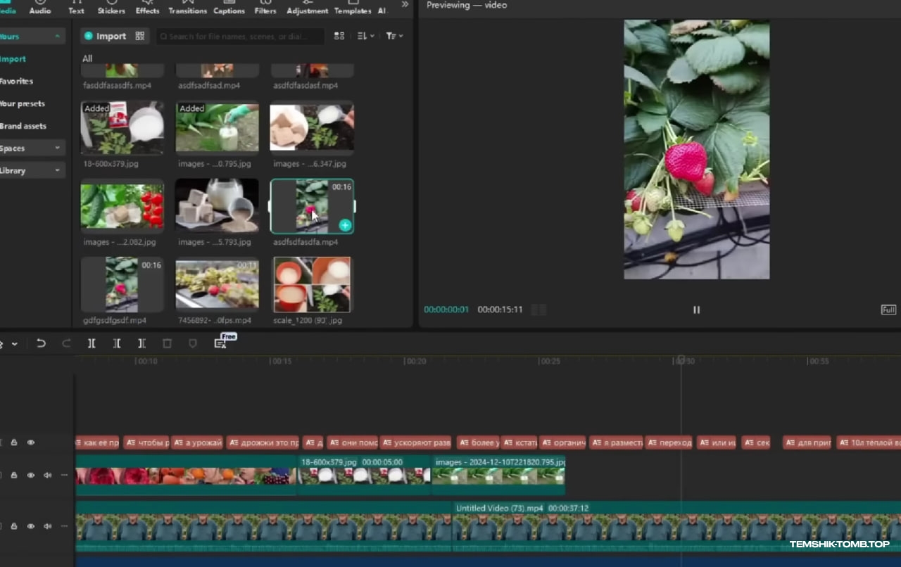 Монтаж таких роликов довольно простой. Накладывается фоновая музыка, добавляются фото с зумом или чужие видео для более динамичной картинки, к ним добавляются переходы и анимации, и затем добавляются автоматические субтитры.Теперь я найду подходящие фото видео для вставок в ролик. Их можно найти на сайтах со стоковыми видео, например, Pixels, чужих YouTube каналах или Instagram аккаунтах.