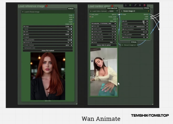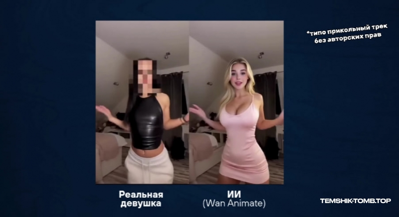 Есть ещё крутая модель Wan Animate: мы загружаем фотографию нашей модели, загружаем видео с настоящей девушкой, например, где она танцует, и происходит замена персонажа.