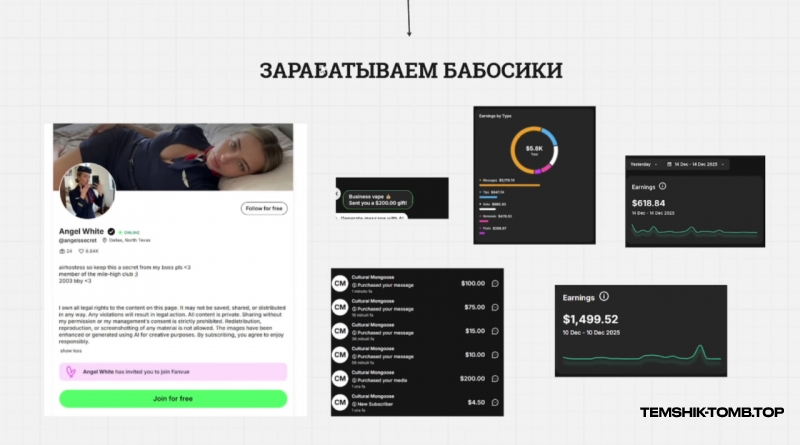 Это суммы, заработанные за один день.Ориентироваться на конкретные цифры не стоит, это полный рандом: можно заработать за месяц и 5 долларов, и 10 000 долларов. О деньгах думайте в последнюю очередь, главное — создать реалистичную, вкусную, сочную модель и сделать грамотный маркетинг, чтобы соцсети взрывались от охватов, тогда трафик будет переходить на платную страницу.