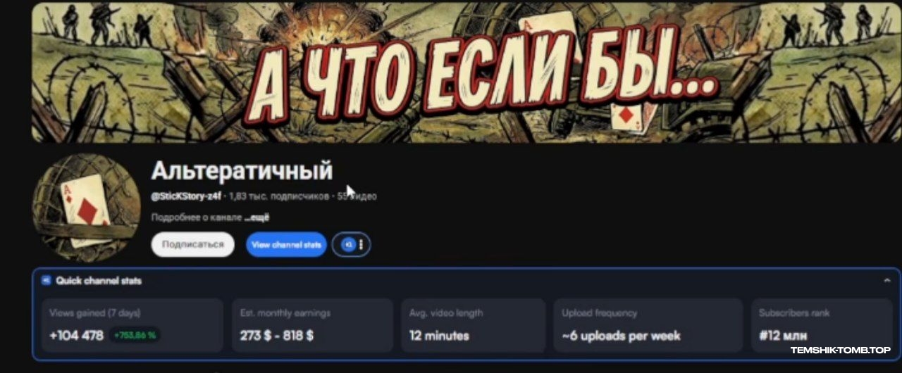 Этот канал относительно новый, набрал за месяц 1,000,000 просмотров. При таком RPM здесь ну 2000 долларов точно, а то и больше.