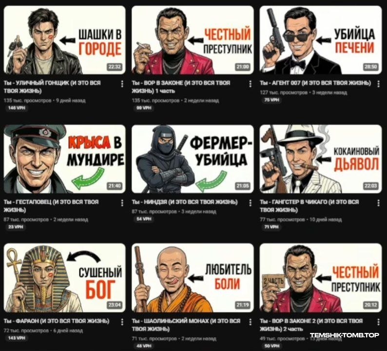 Я нашёл несколько примеров по данной нише. Суть видео в том, что автор показывает: «Если бы ты родился кем-то, как бы проходила твоя жизнь?». Например, там «Ты пешка», «Ты вор в законе», «Олигарх девяностых» и так далее.