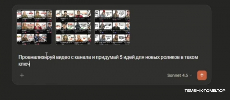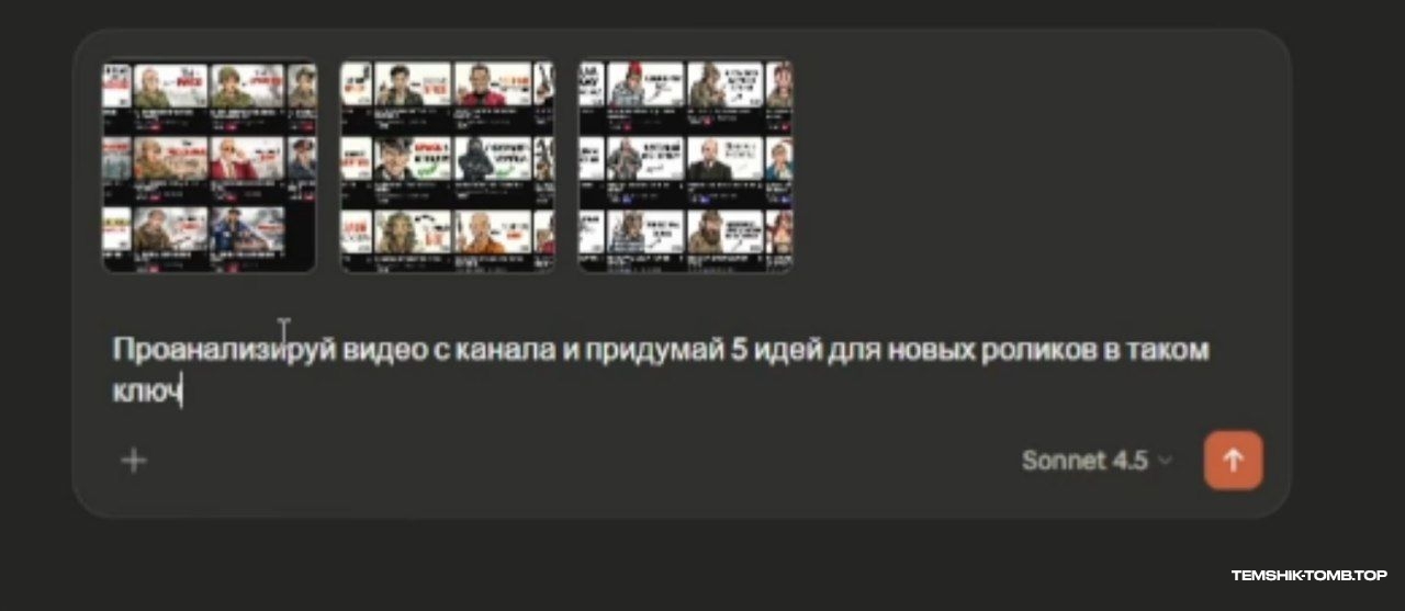 Идём как всегда к Клод и говорим ему: Напиши промт для превью, описание видео, название, чтобы превью получалось как на каналах со скрина. Я порекомендую превью делать в Соре.