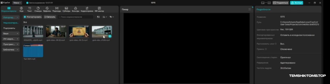Теперь идём в CapCut, если у вас ПК, ещё порекомендую вам суперфункциональную бесплатную программу монтажа davinci resolve, но только для опытных.