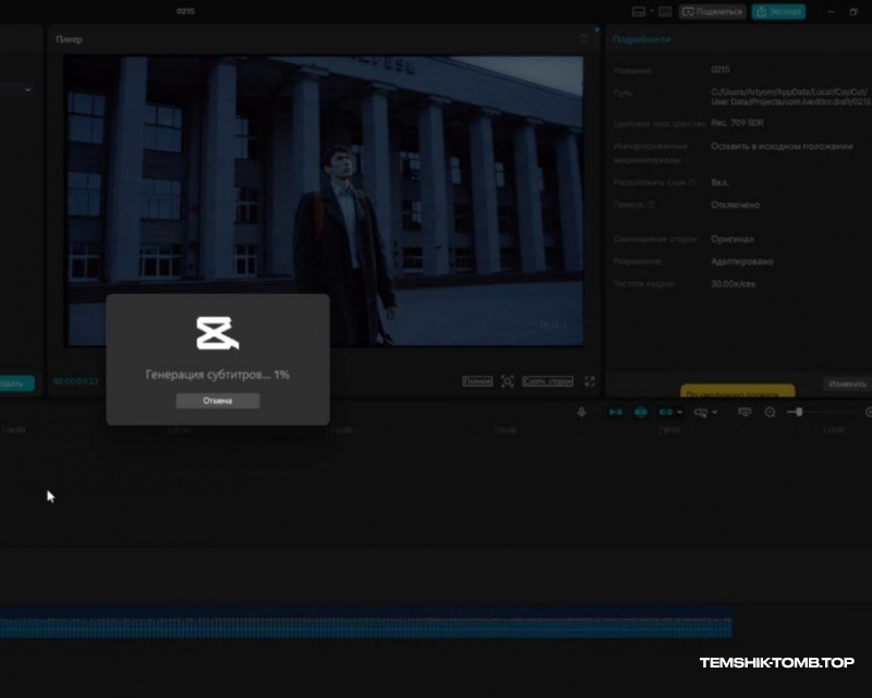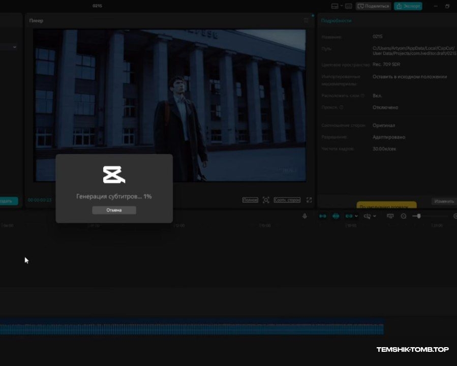 Дальше берёте, делаете автоматические субтитры — они тут создаются очень хорошо. Всё, экспортируете видео.
