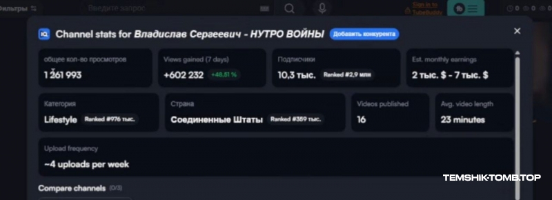 Как обычно, берём популярные видосы у всех найденных конкурентов (не стоит рассматривать исключительно эти три канала, как искать море конкурентов, скоро расскажу отдельным постом) чем больше вы их наберёте, тем лучше обучите нейронку, скриним списки видосов, да побольше.