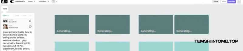 Выбираем соотношение сторон 16:9 , модель Recraft V3, и стиль возьмём, например, фотореализм или более подходящий под вашу задачу.